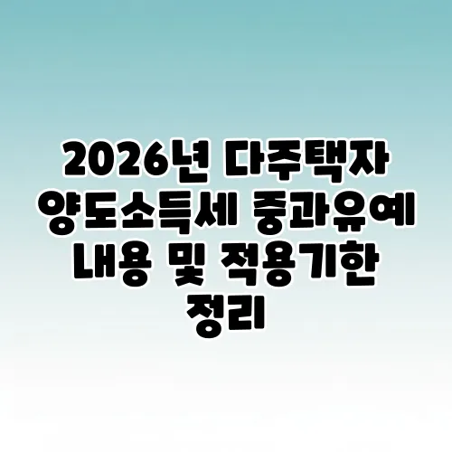 📺 "2026년 다주택자 양도소득세 중과유예 내용 및 적용기한 정리"에 대해 알아보기!